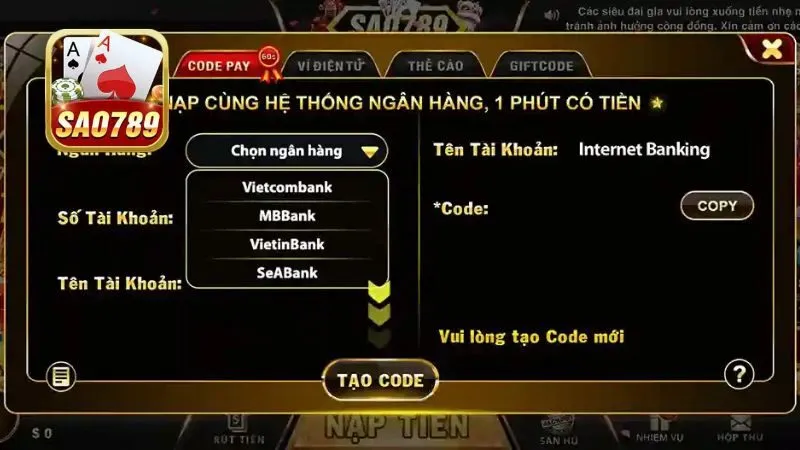 Hướng dẫn nạp rút tiền Sao789 an toàn, nhanh chóng